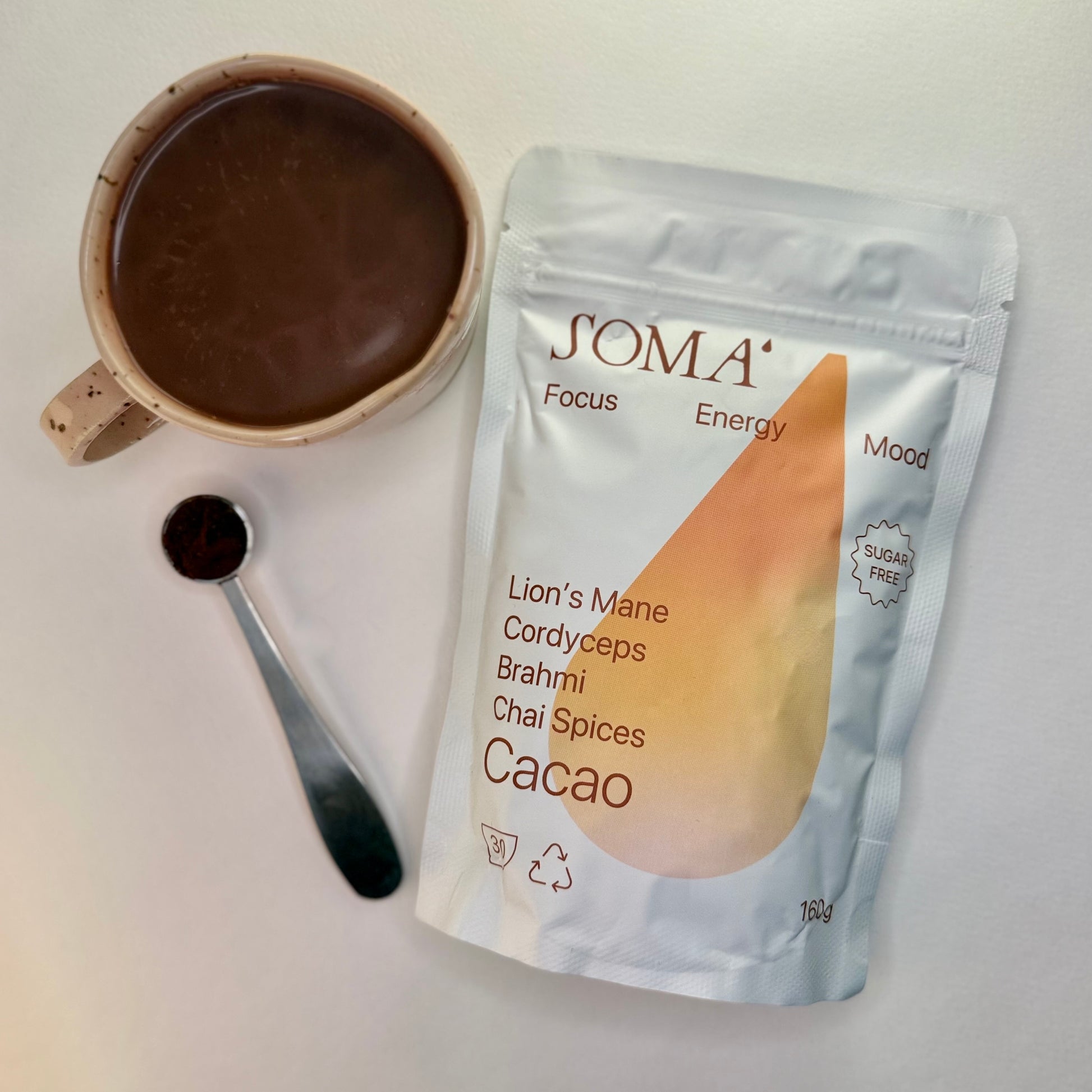 Mix 1 serving (2 teaspoons) into hot water or your favorite milk. Add Soma Creamer for a silky latte texture.
